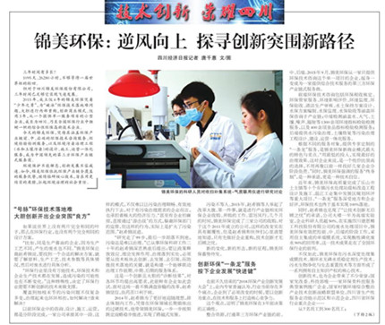 四川经济日报头版专题报道我司探寻创新突围新路径