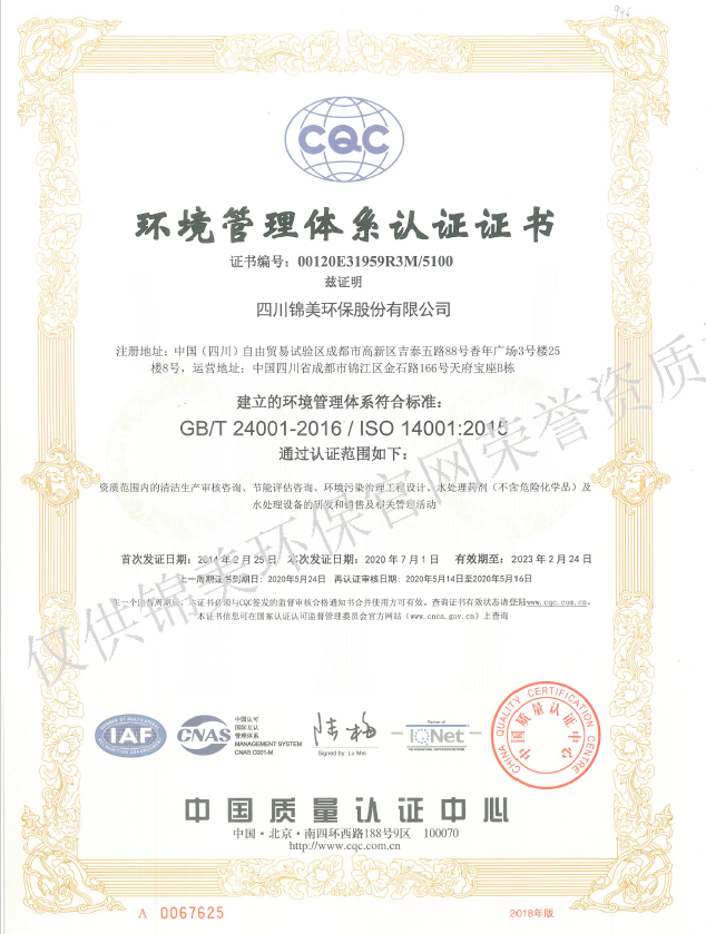 环境管理体系认证证书(蜀水)